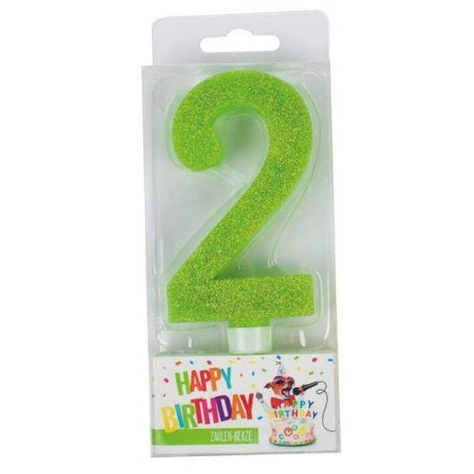 Trendhaus Glitzer-Zahlenkerze 2 - 1 Stück, farblich sortiert