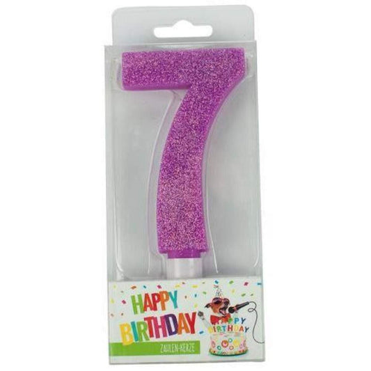Trendhaus Glitzer-Zahlenkerze 7 - 1 Stück, farblich sortiert