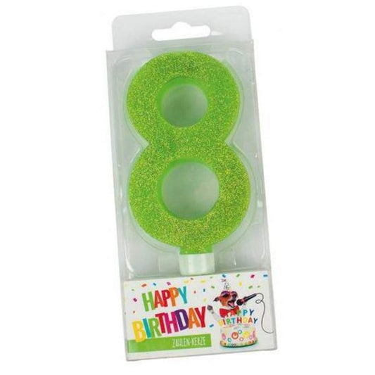 Trendhaus Glitzer-Zahlenkerze 8 - 1 Stück, farblich sortiert