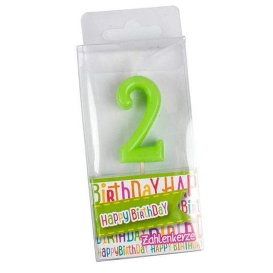 Trendhaus Geburtstagskerze Zahl 2 auf Pick, 1 Stück, 6-fach sortiert