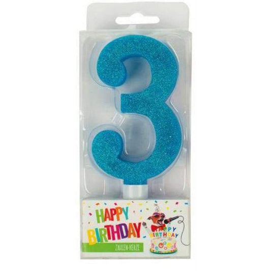 Trendhaus Glitzer-Zahlenkerze 3 - 1 Stück, farblich sortiert