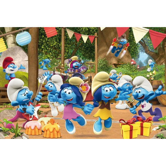 Schmidt Spiele Puzzle - Verschlumpfte Party, 100 Teile, mit Add-on (2 Figuren)