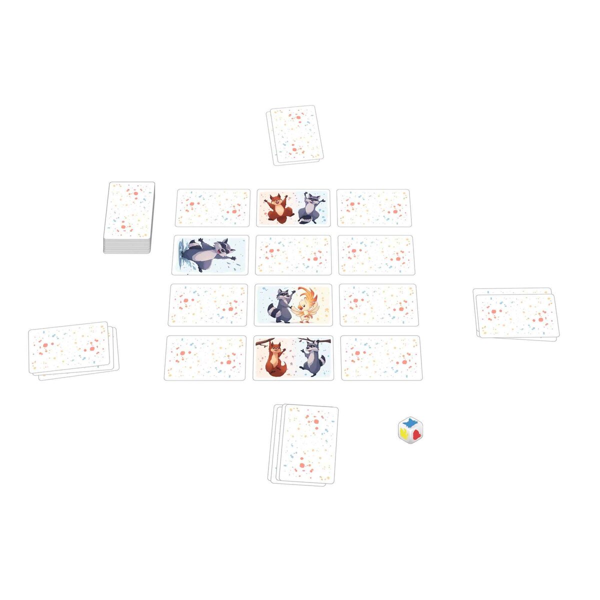 Pim Pam Pum dreht die richtigen Karten um! Du würfelst und suchst das passende Tier. Entscheide selbst, wann du deine Suche beendest. Deckst du eine falsche Karte auf, werden alle Karten wieder umgedreht und die nächste Person ist dran. Wer sich in diesem Kinderspiel gut merkt, wo Pim, Pam und Pum versteckt sind, hat die besten Chancen zu gewinnen!