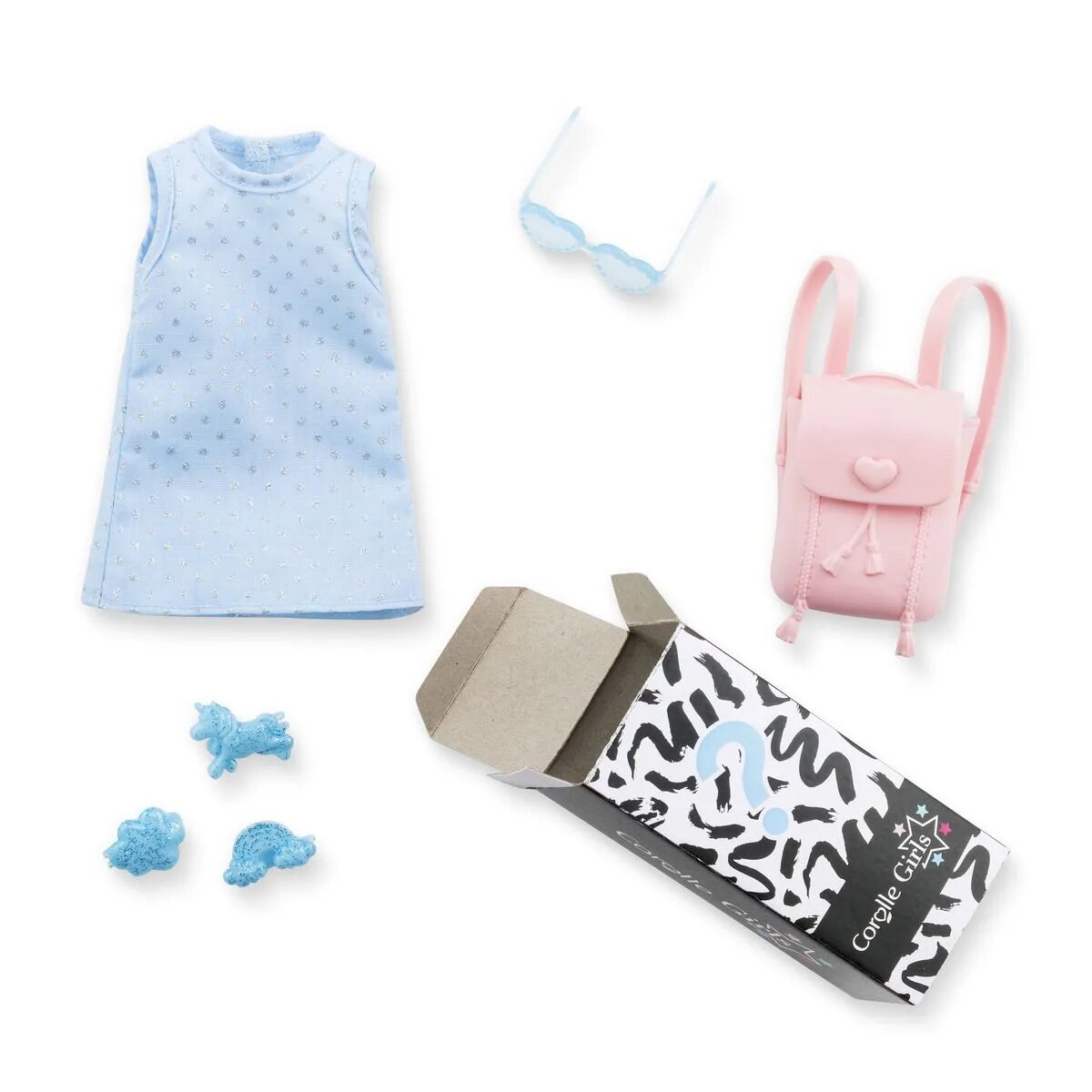 Ankleidepuppe mit Ohrringen + 6 Überraschungen (extra Kleid, 3 Haar- clips, Tasche, Sonnenbrille), Vanilleduft, 28cm, WB, 4J+
