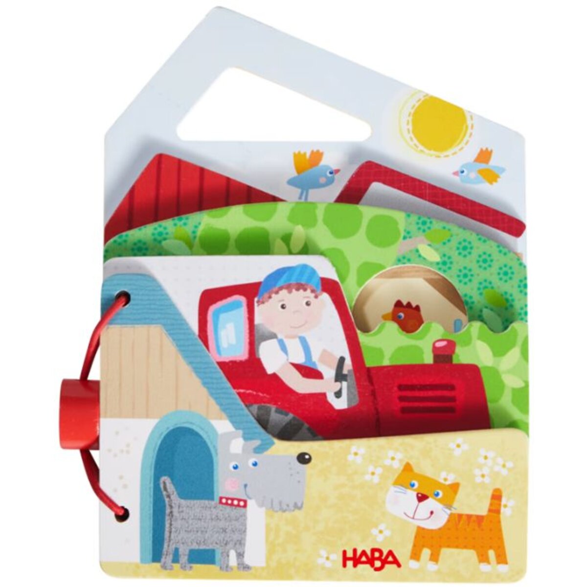 Schau rein und erkunde mit dem Traktor den Bauernhof! Auf 5 bunt bedruckten Seiten aus Holz können Kinder spannende Abenteuer mit dem Traktor, dem Bauern Barnie und den Bauernhoftieren erleben. Die Seiten des HABA Holzbuches sind mit einer Kordel verliersicher zusammengebunden und durch den eingefrästen Griff kann es überall mit hingenommen werden.