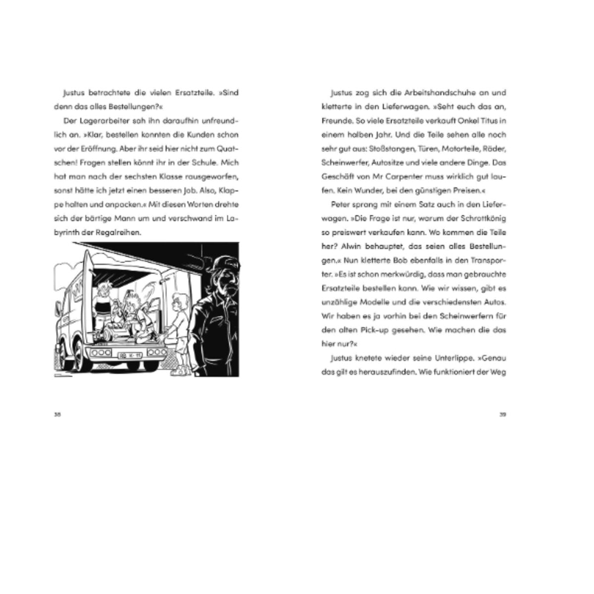 Konkurrenz für Onkel Titus! Im Gewerbegebiet am Stadtrand öffnet ein Handel mit gebrauchten Ersatzteilen. Sie sind dort viel günstiger zu haben als bei ihm. Schnell merkt Onkel Titus, dass immer mehr Kunden wegbleiben. Was sind die Gründe für den Preisunterschied? Justus Jonas, Peter Shaw und Bob Andrews helfen und nehmen die Ermittlungen auf. Als Aushilfen fangen die Freunde auf dem neuen Schrottplatz an. Bald haben sie einen Verdacht: Werden hier Ersatzteile aus neuen Autos verkauft? Ein spannender Fall für die Detektive aus Rocky Beach.