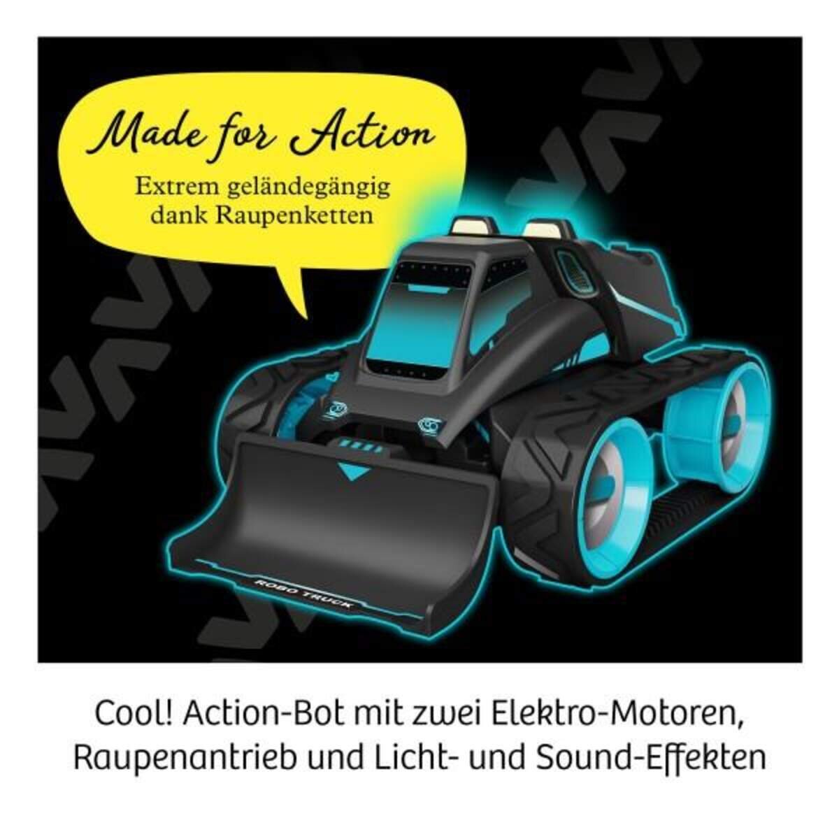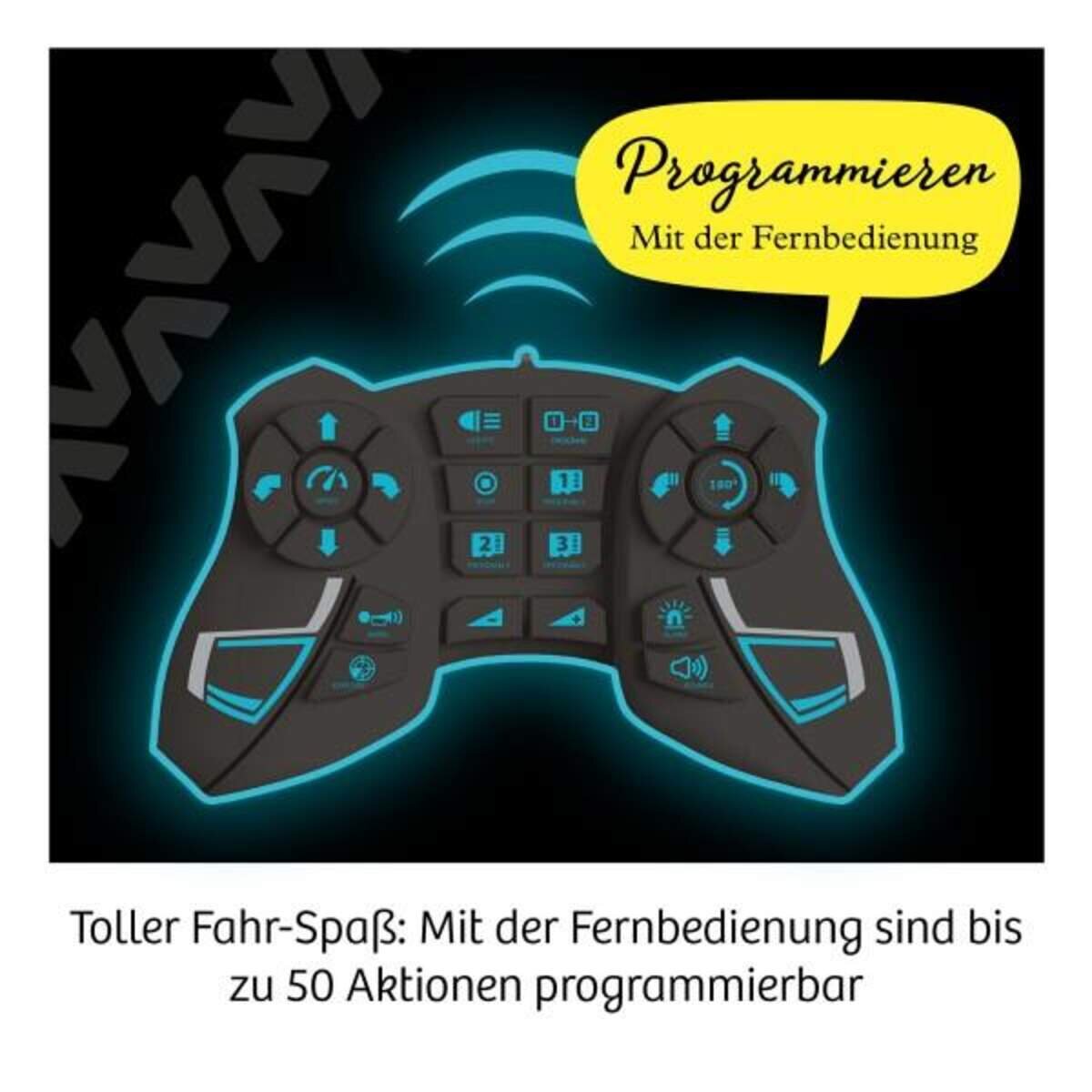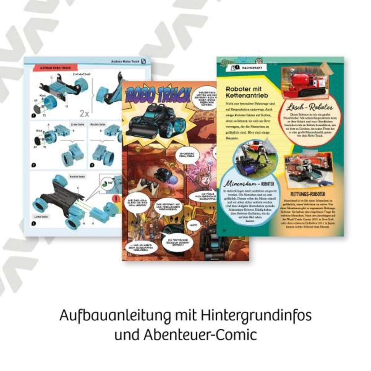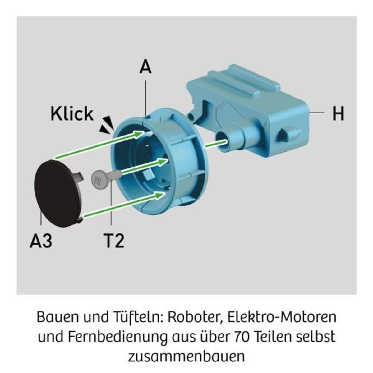 Auch aus der Ferne den Truck voll im Griff – mit der Fernbedienung wird der coole Robo Truck durch schwieriges Gelände gesteuert. Einmal aufgebaut, ist die Bahn frei für viele spannende Funktionen – zum Beispiel den Explorer-Modus, verschiedene Geschwindigkeiten, Lichteffekte und Sounds. Bis zu 50 Aktionen warten darauf, mit der Fernbedienung programmiert, getestet und später erneut abgerufen zu werden. Sowohl das Fahrzeug als auch die Fernbedienung werden von den Kindern selbst zusammengebaut. Dabei lernen sie direkt, was alles in dem Truck steckt, vom Elektro-Motor bis zum Infrarot-Empfänger. Der coole KOSMOS Rover für Kinder zwischen 8 und 12 Jahren mit Raupenketten, Räumschaufel und Ladefläche ist immer bereit für Entdeckungsreisen!