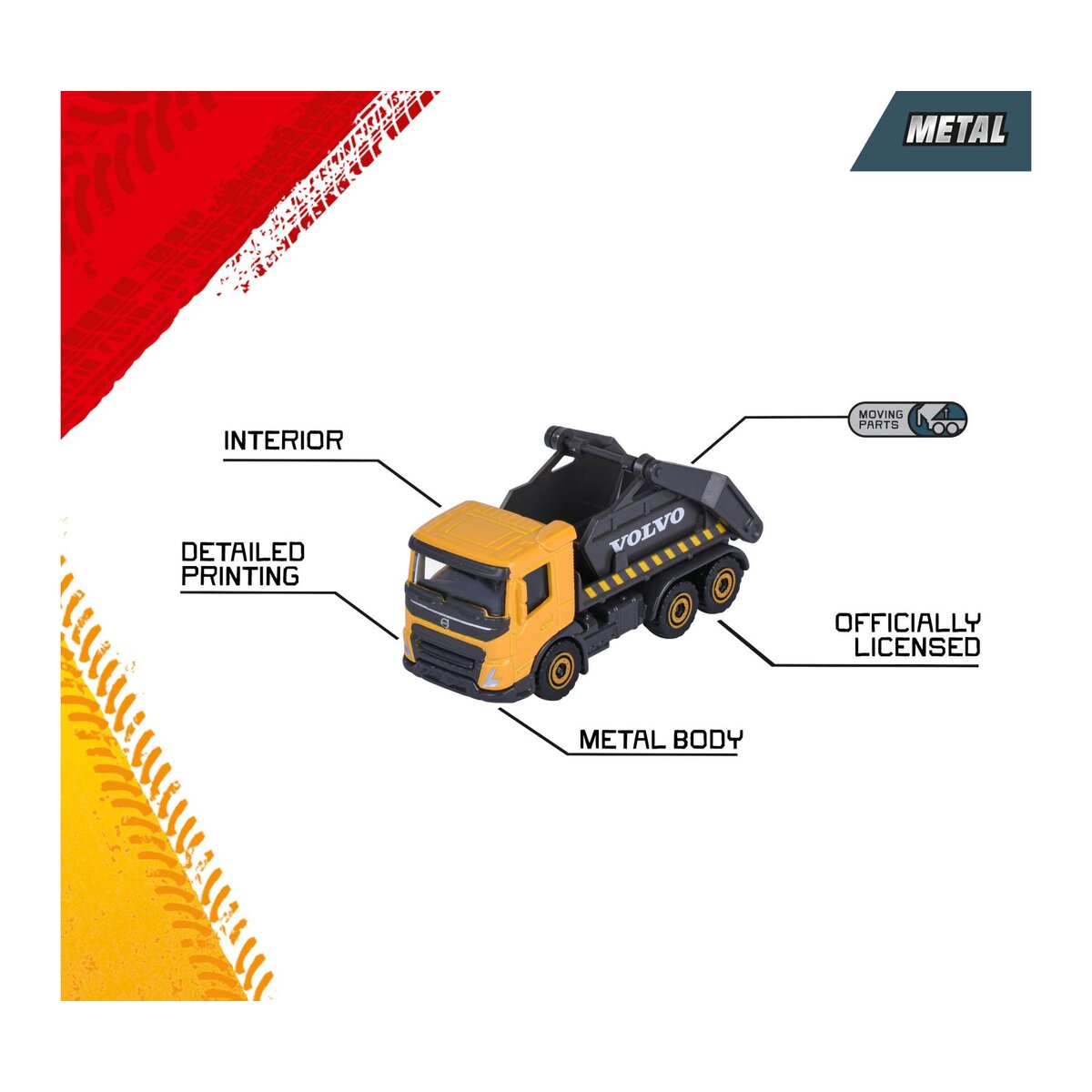 Die Fahrzeuge rollen dank Freilauf zuverlässig über den Boden – im Kinderzimmer und im Sandkasten. Jedes der originalgetreuen Volvo Modellautos bringt ein bewegliches Feature mit, ob der Bagger mit beweglichem Arm, der Laster mit kippbarer Mulde oder der Radlader mit funktionaler Schaufel. Und wer gleich mehrere Fahrzeuge sammelt, kann Schritt für Schritt seine eigene Spielzeug-Baustelle aufbauen!