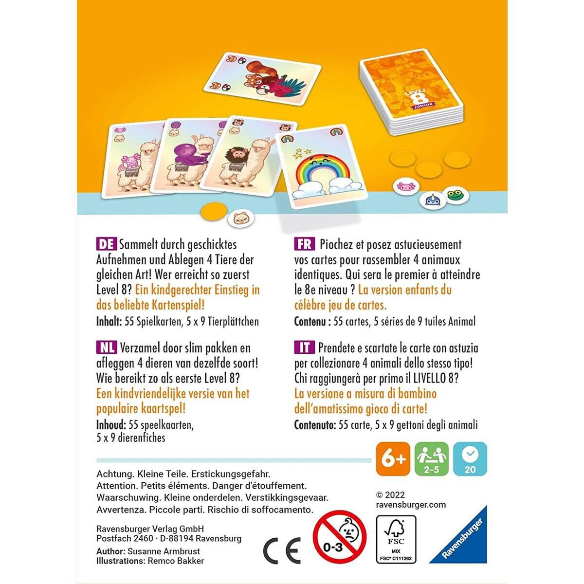 Level 8 Junior: Das beliebte Kartenspiel ‚Level 8‘ hat Nachwuchs bekommen! Reihum müssen passende Karten gesammelt werden, um entsprechende lustige Plättchen aufdecken zu können. So kommt man Plättchen um Plättchen, Level um Level voran. Wer so das 8. Level erreicht, gewinnt dieses spannende Kinderspiel.