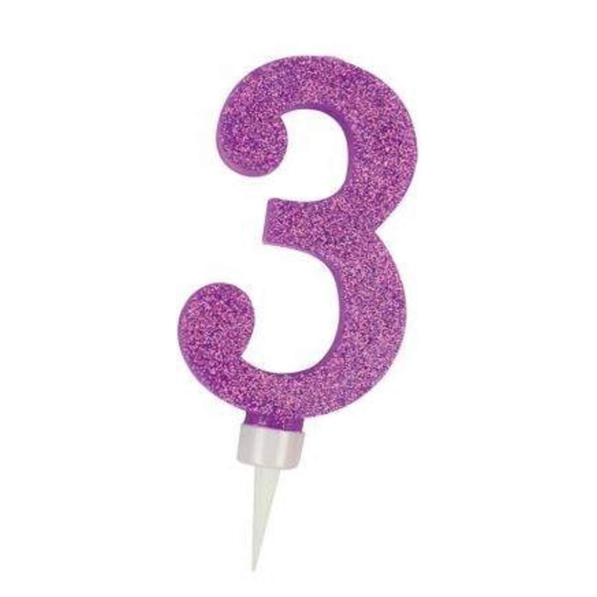 Trendhaus Glitzer-Zahlenkerze 3 - 1 Stück, farblich sortiert